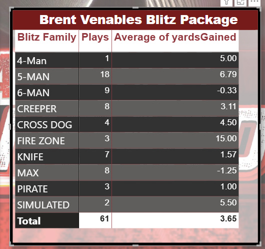 Through three games you can feel Brent getting loose. He is calm on the sideline, no get back coach needed, fully in control, and the defense is flying. The pressure is real and the guys look like they are having a blast teeing off. We will need that juice as the schedule toughens up. Over the next few days we will break down a few of the pressures and the coverage tendencies behind them.